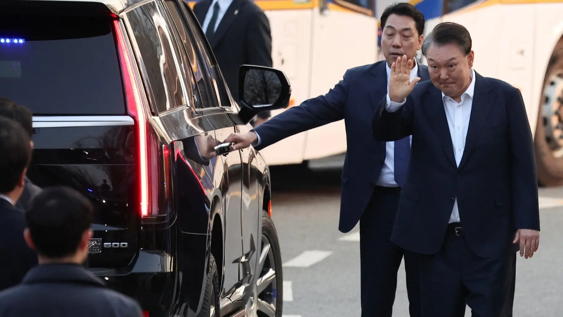وأظهرت لقطات تلفزيونية يون وهو يلوح بيده وينحني بشدة لأنصاره الذين كانوا يهتفون باسمه ويلوحون بالأعلام الوطنية لكوريا الجنوبية والولايات المتحدة.