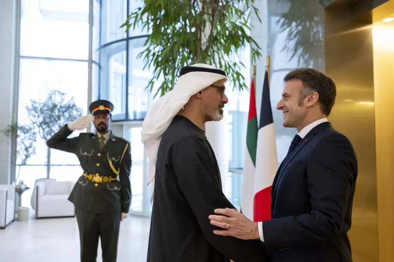 ورحب رئيس الإمارات، خلال اللقاء الذي جرى في متحف زايد الوطني في أبوظبي، بالرئيس الفرنسي. وتبادل معه التهاني بمناسبة قرب حلول العام الجديد متمنيين للبلدين وشعبيهما دوام التقدم والازدهار.