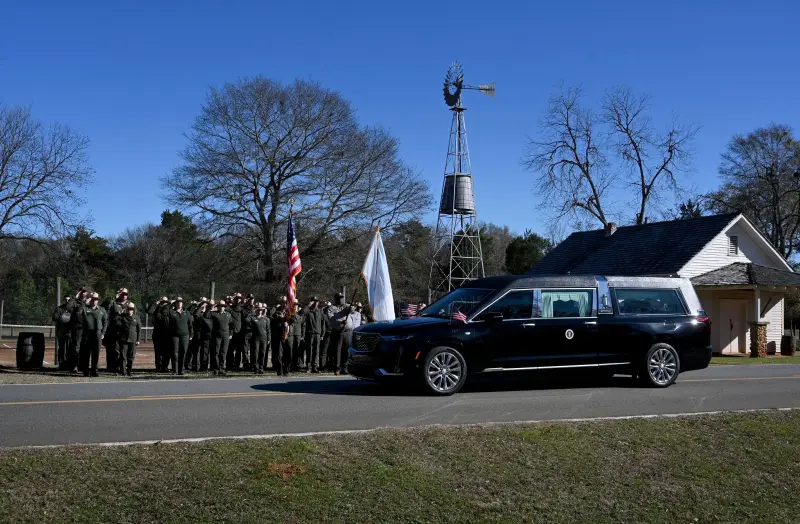 وانطلقت قافلة تحمل نعش كارتر المغطى بالعلم الأميركي من مركز فويب سامتر الطبي في مدينة أميريكوس، حيث قامت عناصر سابقة من جهاز الخدمة السرية، الذين كانوا قد تولوا حماية الرئيس الأسبق، بحمل نعشه وساروا بجانب سيارة نقل الجثمان أثناء مغادرتها للمجمع الطبي.