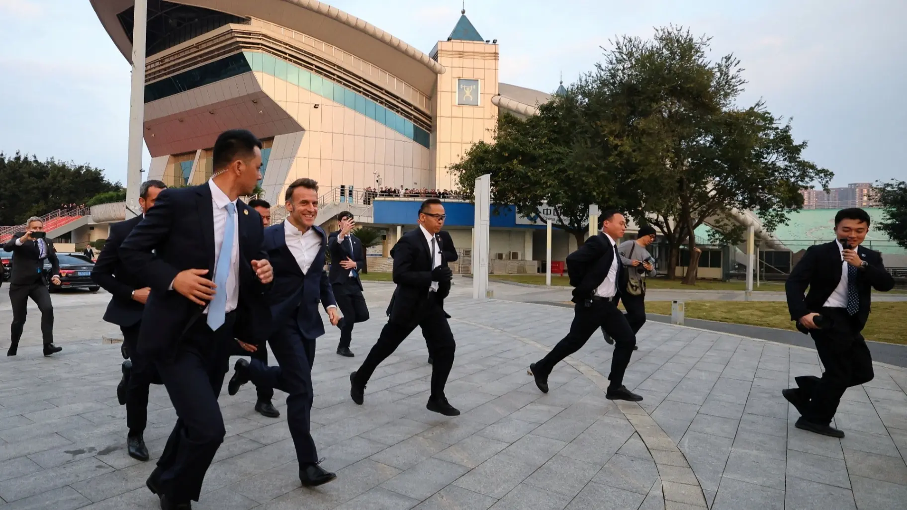 ظهر الرئيس الفرنسي إيمانويل ماكرون في مقطع فيديو مصور، وهو يمارس رياضة الركض خلال زيارة رسمية للصين، برفقة حرسه وعدائين آخرين في حديقة بحيرة جينتشينغ.