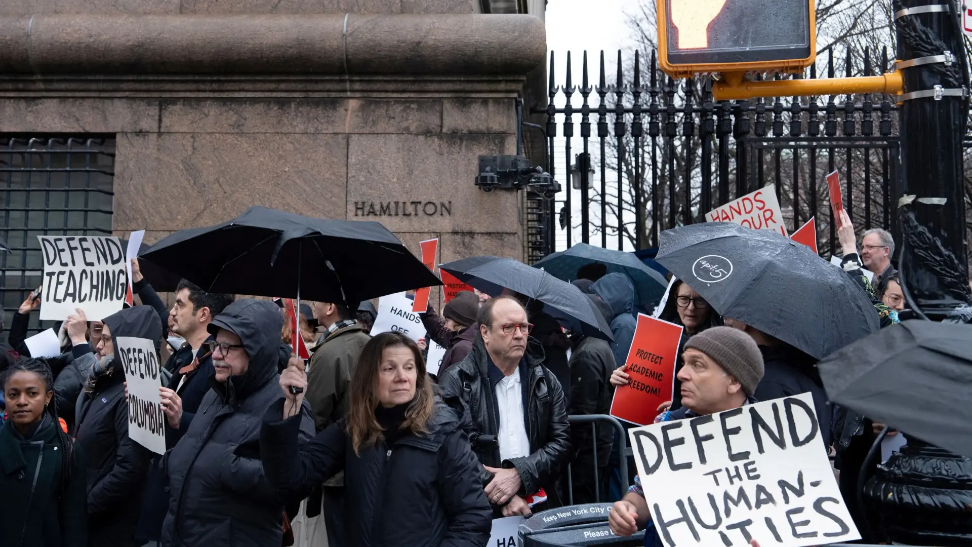 ومن بين المتهمين محمود خليل الذي ساعد في قيادة احتجاجات كولومبيا وكان مفاوضا بين إدارة الجامعة وتحالف المجموعة الطلابية والمتهم بين آخرين بالضلوع في حملة ضغط لسحب استثمارات جامعة كولومبيا من إسرائيل. ومن بين المدعى عليهم الآخرين جماعة "متحدون طوال حياتنا من أجل فلسطين"، وطلاب "كولومبيا من أجل العدالة في فلسطين"، و"صوت كولومبيا-بارنارد اليهودي من أجل السلام"، وبعض قيادات هذه الجماعات.