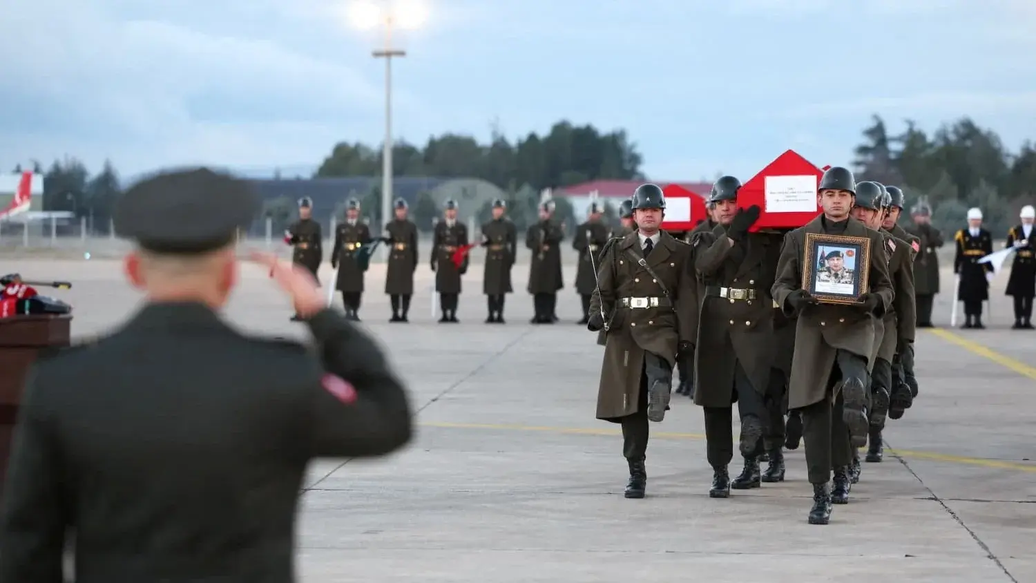 أُقيمت في تركيا مراسم جنازة عسكرية صباح اليوم السبت، لـ5 ضباط ليبيين، بينهم رئيس أركان قوات غرب ليبيا، والذين لقوا حتفهم في تحطم طائرة يوم الثلاثاء الماضي.