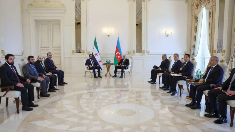 ويجري الشرع زيارة رسمية إلى أذربيجان حيث التقى والوفد المرافق له رئيس جمهورية أذربيجان إلهام علييف في قصر زوغولبا بالعاصمة باكو صباح اليوم.