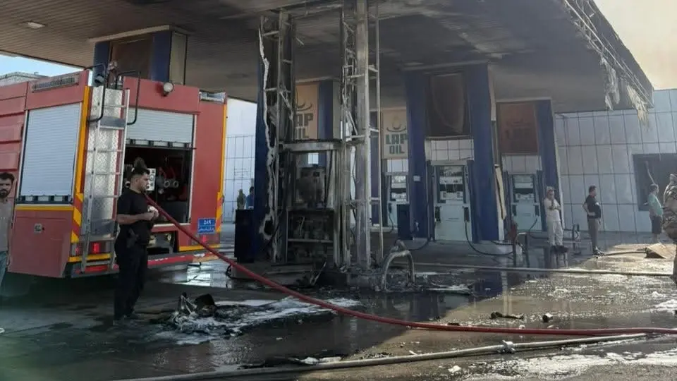 وأظهر مقطع فيديو تصاعد ألسنة اللهب والدخان الكثيف من محطة وقود بحي "فرمان بران" بمدينة أربيل العراقية.