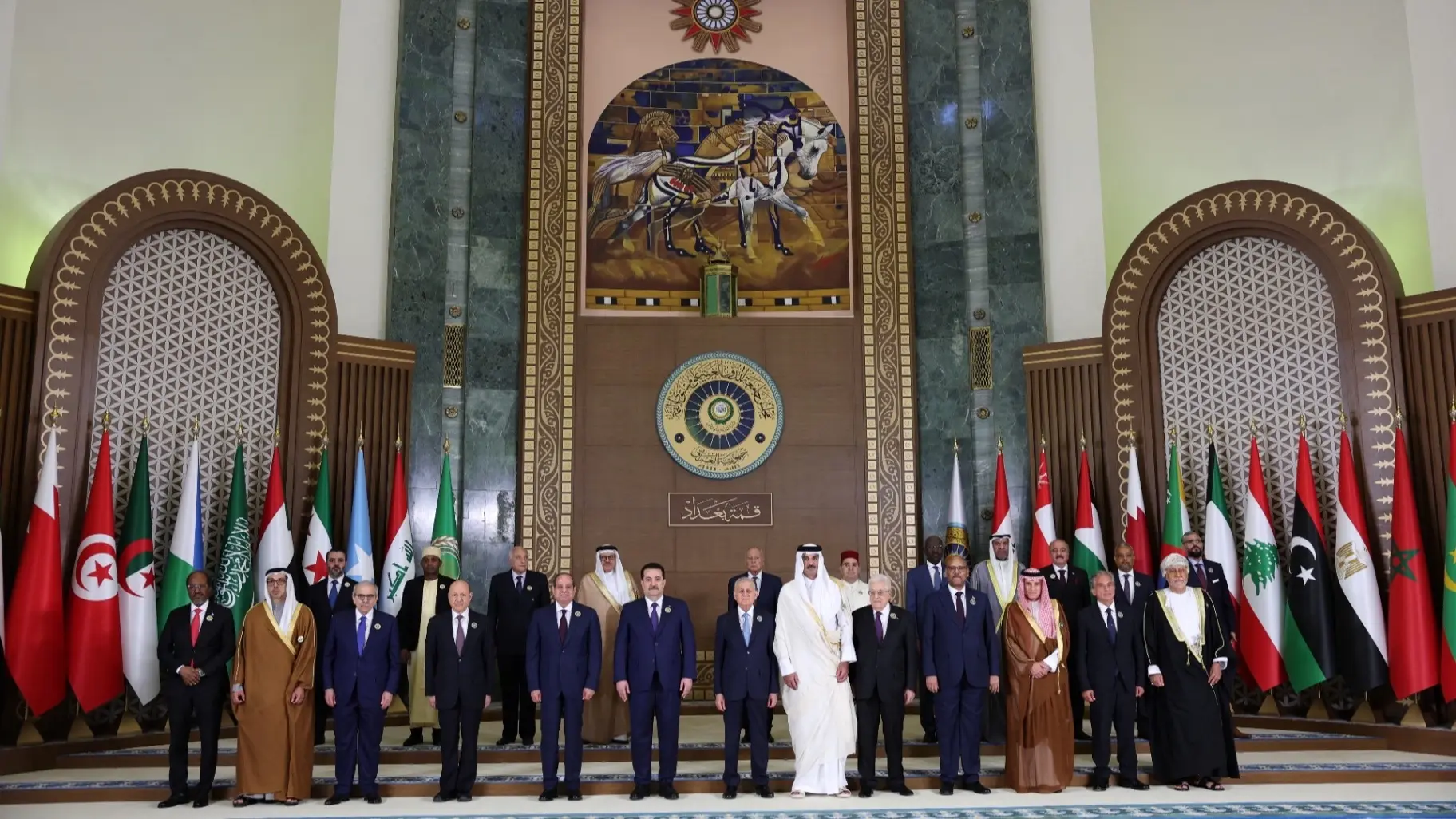 طالب القادة العرب السبت من بغداد، المجتمع الدولي بـ"الضغط من أجل وقف إراقة الدماء" في قطاع غزة حيث يستمرّ القصف الإسرائيلي الكثيف.