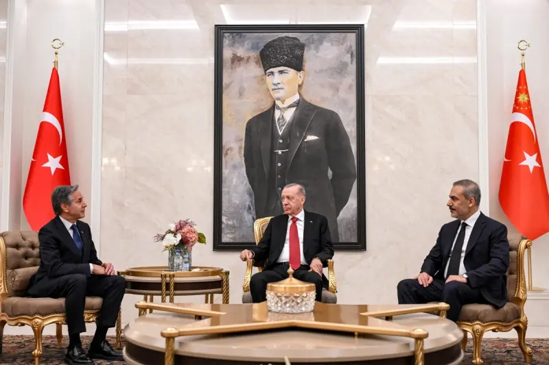 والتقى بلينكن على مدى أكثر من ساعة، في صالة بمطار أنقرة مساء الخميس، مع إردوغان الذي كان قد التقى رئيس الوزراء المجري القومي فيكتور أوربان.