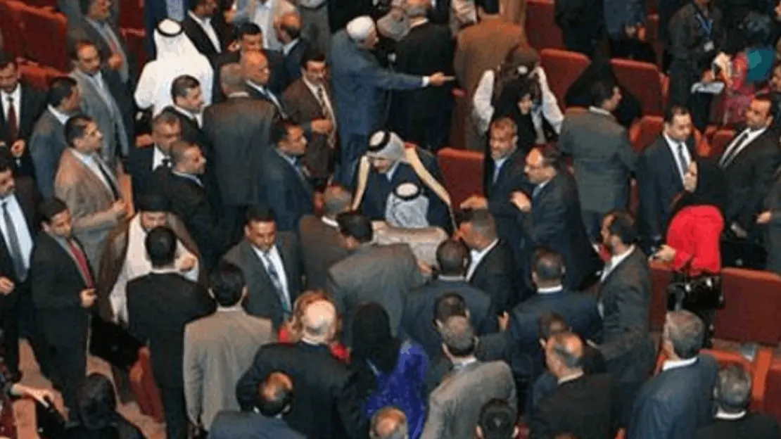 ونشب شجار بين المكونات السنية والشيعية داخل البرلمان العراقي في جلسة الأمس وتطور شجار بين أحد النواب ورئيس البرلمان محمود المشهداني إلى حالة فوضى وتبادل للعنف.