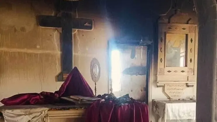 وأوضحت المصادر أنّ مجموعة مسلحة أضرمت النار عمدًا في الكنيسة، ما تسبب في أضرار لحقت بهيكلها الأثري على الرغم من محاولات أهالي القرية إخماد الحريق والسيطرة عليه قبل تفاقمه.
